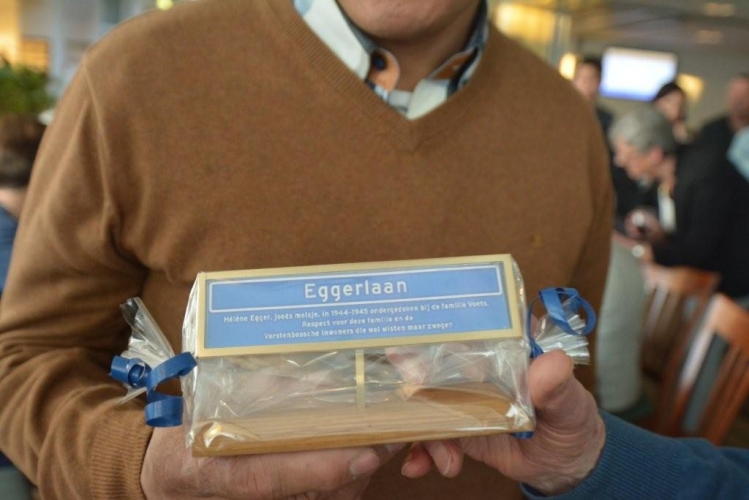 — 23 januari 2017 Reacties uitgeschakeld voor [FOTOS EN VIDEO] Eggerlaan met onderschrift 889Op zaterdag 21 januari werd een nieuw straatnaambord voor de Eggerlaan onthuld door Hélène Egger en burgemeester Marieke Moorman. Met het onderschrift “Hélène Egger, joods meisje. In 1944-1945 ondergedoken bij de familie Voets. Respect voor deze familie en de Vorstenbossche inwoners die wel wisten maar zwegen.” kan niemand meer voorbij aan het verhaal achter de Eggerlaan. In 1964 werd deze toen nieuwe straat naar haar vernoemd. Hélène Egger (87) keerde na de oorlog terug naar Amsterdam. Haar vader en broers waren in het vernietigingskamp Auschwitz omgebracht en Hélène verbleef er tot aan haar trouwen bij haar oma en opa. Nog steeds heeft ze warme contacten met de familie Voets. Burgemeester Moorman wist te vertellen dat Grad en Betje Voets binnenkort postuum de hoge Israëlische Yad Vashem-onderscheiding ontvangen voor het feit dat ze in de Tweede Wereldoorlog een tijdlang het Joodse meisje Hélène Egger in hun gezin hebben opgevangen.