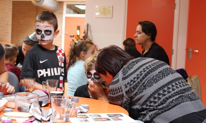 De kinderen verzamelden zich na opening bij hun eigen leraar op de grote speelplaats. Er was een strak schema voor de spelletjes met daar tussenin pauze. Onder het toeziend oog van ouders, vrijwilligers en leraren genoten de kinderen zichtbaar van alle spelletjes en het mooie weer. De spelletjes varieerden van, cupcakes versieren, schminken, snoepmemorie, spetterfeest, helmenspel tot aan misschien wel het mooiste spelletje ‘leerkracht beschilderen. Maar ook het oud Hollands stoepkrijten was een plezier voor de jeugd.